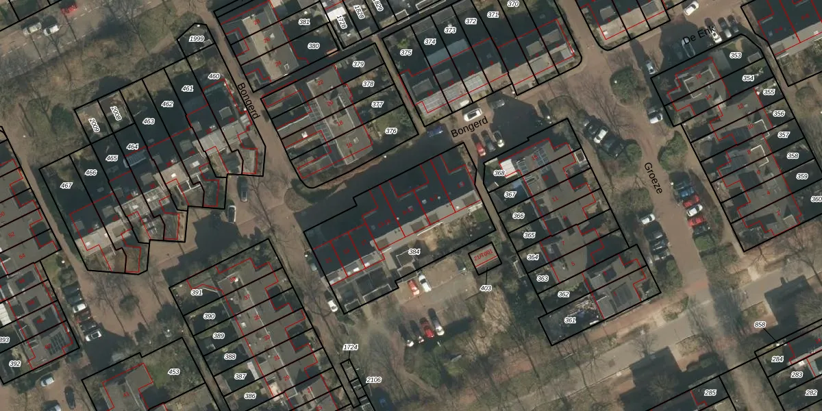 Het perceel waarop Bongerd 9 staat heeft een oppervlakte van 982 m². Dit is een groot perceel. De perceeloppervlakte wordt geregistreerd door het Kadaster. Gedetailleerde informatie over de maten van dit perceel kunt u vinden in het rapport Kadastrale kaart met maatvoering van Bongerd 9.