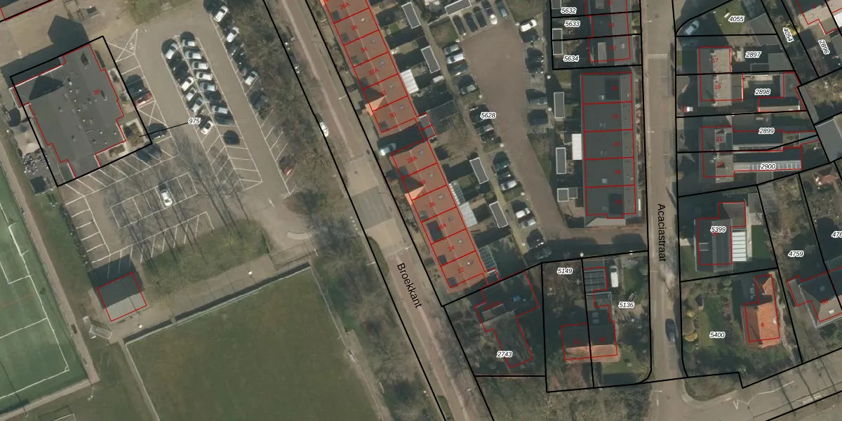 Het perceel waarop Broekkant 26 staat heeft een oppervlakte van 5345 m². Dit is een zeer groot perceel. De perceeloppervlakte wordt geregistreerd door het Kadaster. Gedetailleerde informatie over de maten van dit perceel kunt u vinden in het rapport Kadastrale kaart met maatvoering van Broekkant 26.