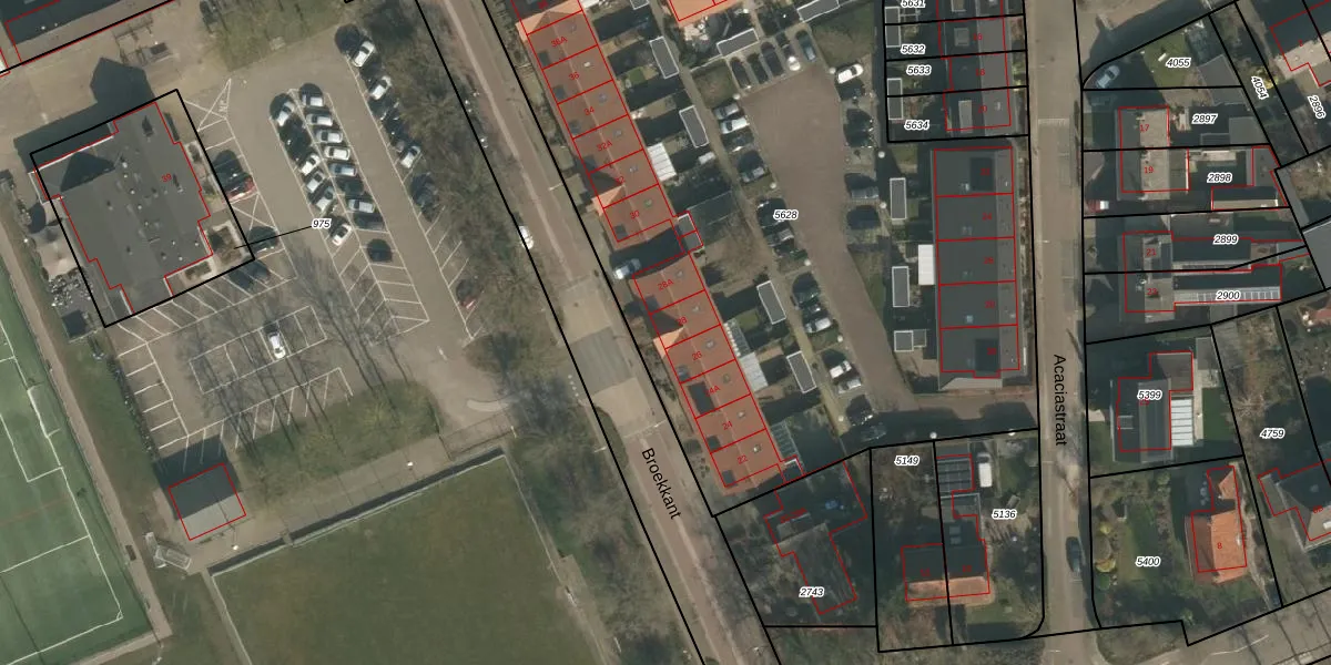 Het perceel waarop Broekkant 28 staat heeft een oppervlakte van 5345 m². Dit is een zeer groot perceel. De perceeloppervlakte wordt geregistreerd door het Kadaster. Gedetailleerde informatie over de maten van dit perceel kunt u vinden in het rapport Kadastrale kaart met maatvoering van Broekkant 28.
