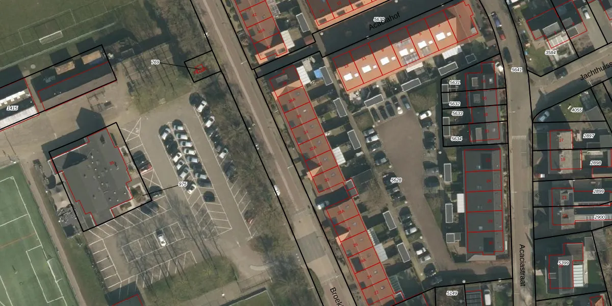 Het perceel waarop Broekkant 32-A staat heeft een oppervlakte van 5345 m². Dit is een zeer groot perceel. De perceeloppervlakte wordt geregistreerd door het Kadaster. Gedetailleerde informatie over de maten van dit perceel kunt u vinden in het rapport Kadastrale kaart met maatvoering van Broekkant 32-A.