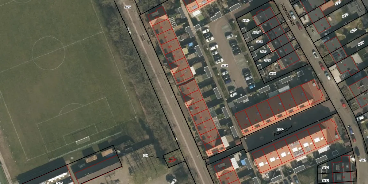 Het adres is gelegen op perceel 5629 in de sectie G en de kadastrale gemeente Heumen. De kadastrale aanduiding is aldus HMN01-G-5629. De gemiddelde perceeloppervlakte in de kadastrale gemeente Heumen is 2939,72 m². Dit perceel is met zijn 5265 m² dus groter dan gemiddeld. Het grootste perceel in de kadastrale gemeente is 50,5 ha. Het kleinste perceel heeft een oppervlakte van 0 m². Op het perceel zijn 28 adressen aanwezig. In de Basisregistratie Kadaster (BRK) werden de grenzen van het perceel geregistreerd op 18-06-2012.