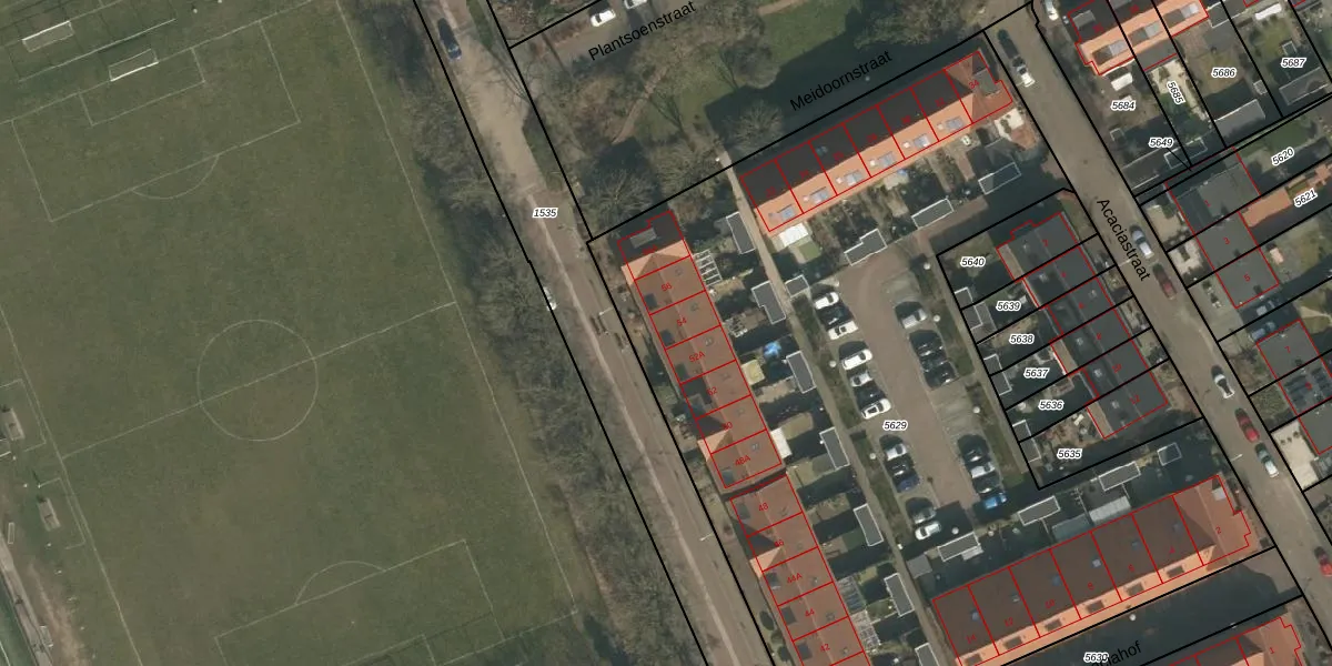 Het adres is gelegen op perceel 5629 in de sectie G en de kadastrale gemeente Heumen. De kadastrale aanduiding is aldus HMN01-G-5629. De gemiddelde perceeloppervlakte in de kadastrale gemeente Heumen is 2939,72 m². Dit perceel is met zijn 5265 m² dus groter dan gemiddeld. Het grootste perceel in de kadastrale gemeente is 50,5 ha. Het kleinste perceel heeft een oppervlakte van 0 m². Op het perceel liggen in totaal 28 adressen. De laatste wijziging in het de Basisregistratie Kadaster (BRK) was op 18-06-2012.