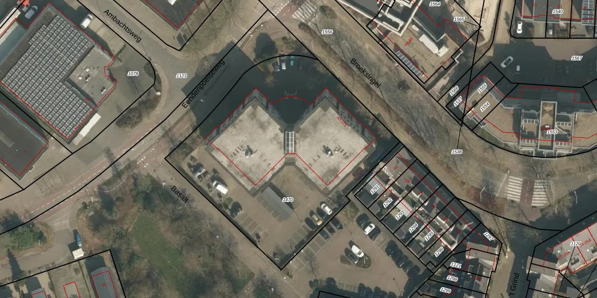 Het adres is gelegen op perceel 1470 in de sectie F en de kadastrale gemeente Heumen. De kadastrale aanduiding is aldus HMN01-F-1470. Het perceel is met 3072 m² relatief groot. Het gemiddelde ligt in de kadastrale gemeente Heumen op 2941,35 m². Het kleinste perceel in de kadastrale gemeente is 0 m² groot. De grootste perceeloppervlakte is 50,5 ha. Op het perceel liggen in totaal 40 adressen. De huidige grenzen van het perceel zijn digitaal in de Basisregistratie Kadaster (BRK) geregistreerd op 07-10-2009.
