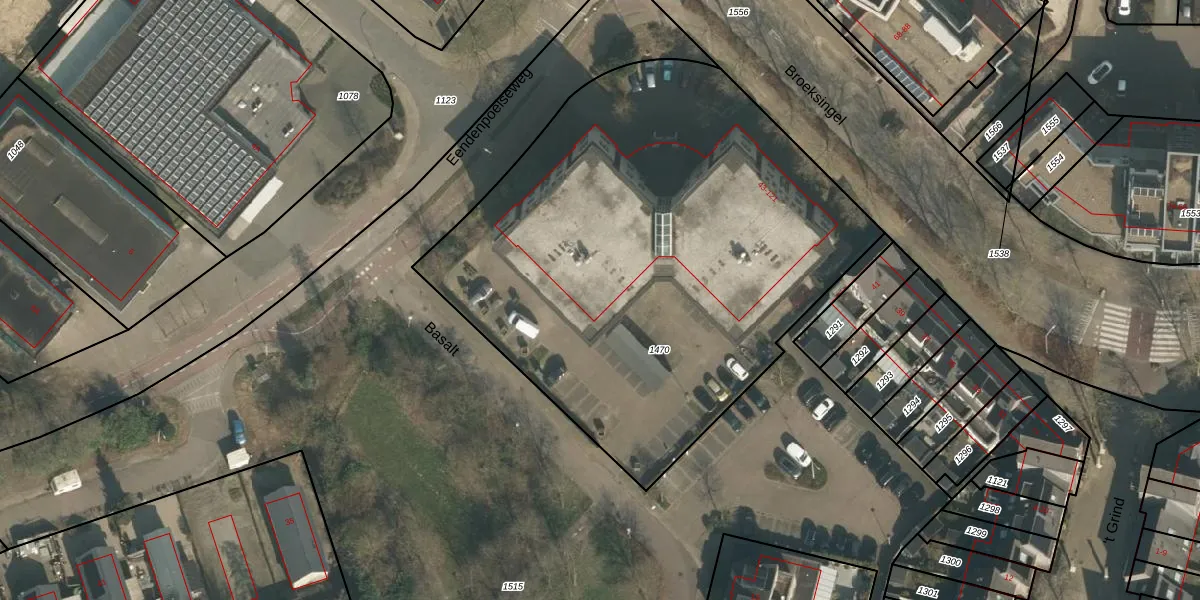 Het adres is gelegen op perceel 1470 in de sectie F en de kadastrale gemeente Heumen. De kadastrale aanduiding is aldus HMN01-F-1470. Het perceel is met 3072 m² relatief groot. Het gemiddelde ligt in de kadastrale gemeente Heumen op 2941,35 m². Het kleinste perceel in de kadastrale gemeente is 0 m² groot. De grootste perceeloppervlakte is 50,5 ha. Op het perceel liggen in totaal 40 adressen. De huidige grenzen van het perceel zijn digitaal in de Basisregistratie Kadaster (BRK) geregistreerd op 07-10-2009.