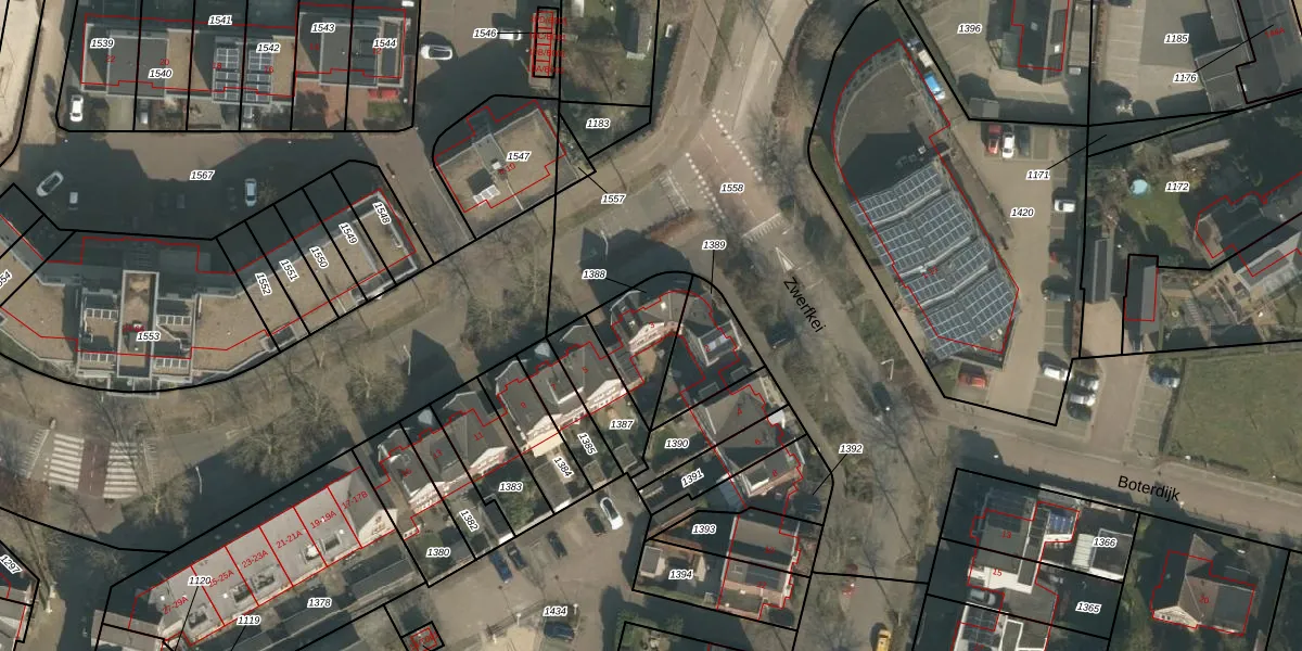 Gebruik de zoekbalk of klik op een perceel voor informatie over de adressen binnen dit perceel.