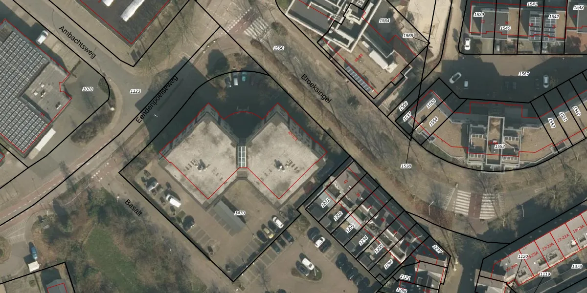 Het adres is gelegen op perceel 1470 in de sectie F en de kadastrale gemeente Heumen. De kadastrale aanduiding is aldus HMN01-F-1470. Het perceel is met 3072 m² relatief groot. Het gemiddelde ligt in de kadastrale gemeente Heumen op 2941,35 m². Het grootste perceel in de kadastrale gemeente is 50,5 ha. Het kleinste perceel heeft een oppervlakte van 0 m². Op het perceel liggen in totaal 40 adressen. De laatste wijziging in het de Basisregistratie Kadaster (BRK) was op 07-10-2009.