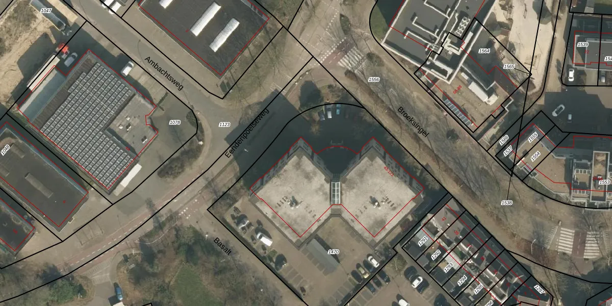 Het adres is gelegen op perceel 1470 in de sectie F en de kadastrale gemeente Heumen. De kadastrale aanduiding is aldus HMN01-F-1470. Het perceel is met 3072 m² relatief groot. Het gemiddelde ligt in de kadastrale gemeente Heumen op 2941,35 m². Het kleinste perceel in de kadastrale gemeente is 0 m² groot. De grootste perceeloppervlakte is 50,5 ha. Op het perceel zijn 40 adressen aanwezig. In de Basisregistratie Kadaster (BRK) werden de grenzen van het perceel geregistreerd op 07-10-2009.
