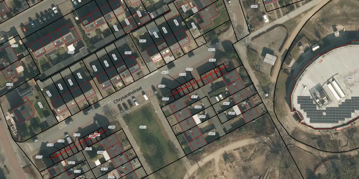 Chrysanthstraat 44-G001 is gelegen op kadastraal perceel HMN01G5669. Deze kadastrale aanduiding is uniek en wordt gebruikt door het Kadaster om eigendomsrechten en andere zakelijke rechten vast te leggen. Het perceel maakt onderdeel uit van de kadastrale gemeente Heumen.