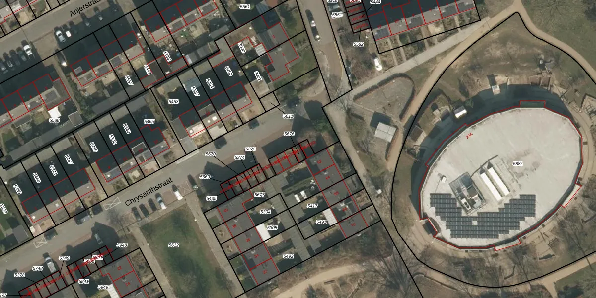 Het perceel waarop Chrysanthstraat 58-G001 staat heeft een oppervlakte van 15 m². Dit is een klein perceel. De perceeloppervlakte wordt geregistreerd door het Kadaster. Gedetailleerde informatie over de maten van dit perceel kunt u vinden in het rapport Kadastrale kaart met maatvoering van Chrysanthstraat 58-G001.