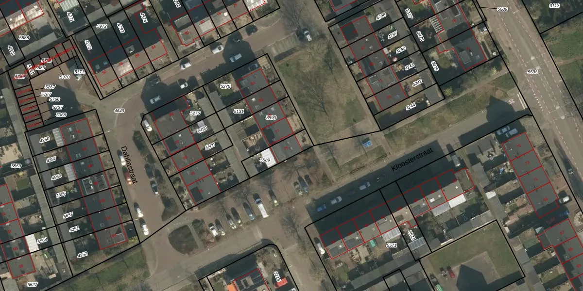 Dahliastraat 75 is gelegen op kadastraal perceel HMN01G5589. Deze kadastrale aanduiding is uniek en wordt gebruikt door het Kadaster om eigendomsrechten en andere zakelijke rechten vast te leggen. Het perceel maakt onderdeel uit van de kadastrale gemeente Heumen.