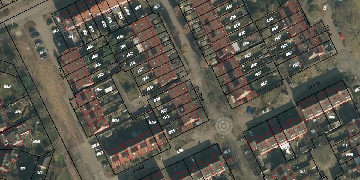 Gebruik de zoekbalk of klik op een perceel voor informatie over de adressen binnen dit perceel.
