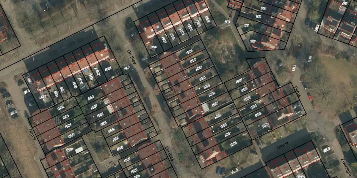Gebruik de zoekbalk of klik op een perceel voor informatie over de adressen binnen dit perceel.