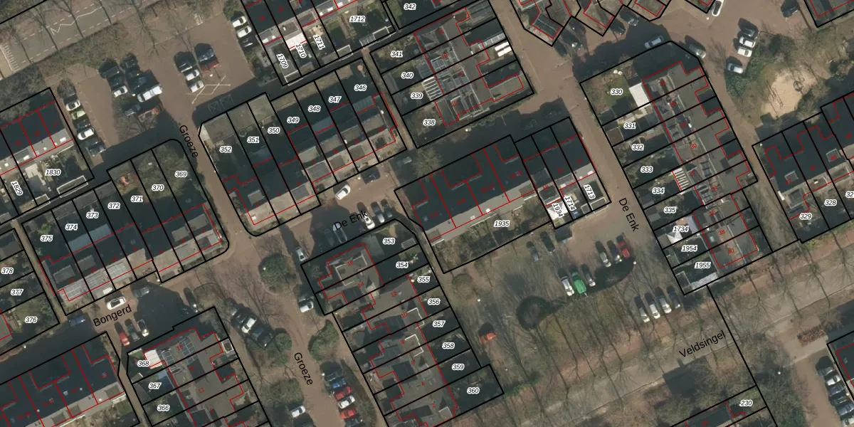 Het perceel waarop De Enk 2 staat heeft een oppervlakte van 657 m². Dit is een groot perceel. De perceeloppervlakte wordt geregistreerd door het Kadaster. Gedetailleerde informatie over de maten van dit perceel kunt u vinden in het rapport Kadastrale kaart met maatvoering van De Enk 2.