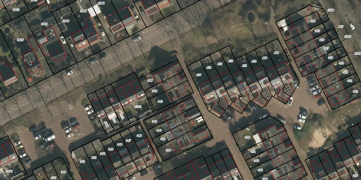 Gebruik de zoekbalk of klik op een perceel voor informatie over de adressen binnen dit perceel.