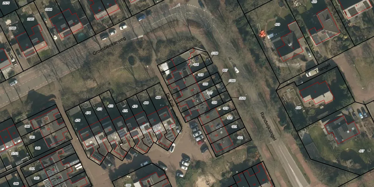Het perceel waarop het adres ligt is HMN01-H-316. De afkorting 'HMN01' staat voor kadastrale gemeente Heumen. De gemiddelde perceelgrootte in Heumen is 2943,38 m². Dit perceel is kleiner: de perceeloppervlakte bedraagt 126 m². Het grootste perceel in de kadastrale gemeente is 50,5 ha. Het kleinste perceel heeft een oppervlakte van 0 m². Er zijn geen andere adressen aanwezig op het perceel. In de Basisregistratie Kadaster (BRK) werden de grenzen van het perceel geregistreerd op 30-12-2010.