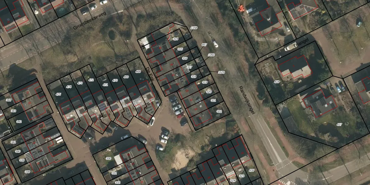 Gebruik de zoekbalk of klik op een perceel voor informatie over de adressen binnen dit perceel.