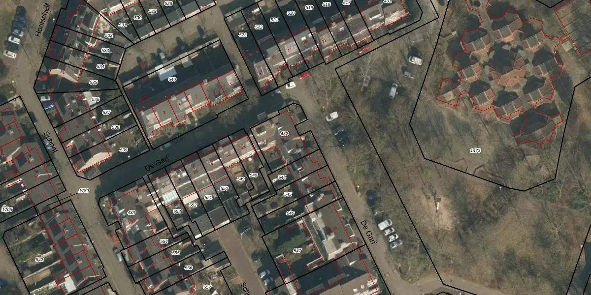 Het perceel waarop De Garf 18 staat heeft een oppervlakte van 294 m². Dit is een middelgroot perceel. De perceeloppervlakte wordt geregistreerd door het Kadaster. Gedetailleerde informatie over de maten van dit perceel kunt u vinden in het rapport Kadastrale kaart met maatvoering van De Garf 18.