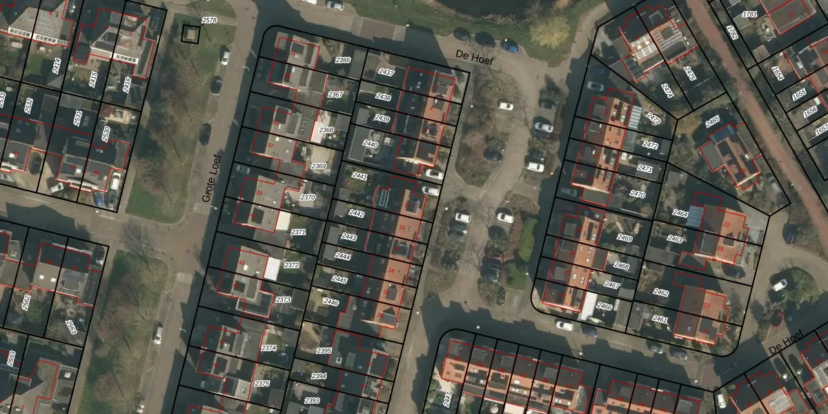 Gebruik de zoekbalk of klik op een perceel voor informatie over de adressen binnen dit perceel.