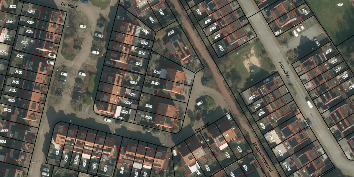 Gebruik de zoekbalk of klik op een perceel voor informatie over de adressen binnen dit perceel.