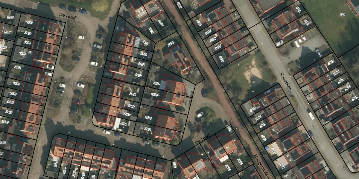 De Hoef 27 is gelegen op kadastraal perceel HMN01C2464. Deze kadastrale aanduiding is uniek en wordt gebruikt door het Kadaster om eigendomsrechten en andere zakelijke rechten vast te leggen. Het perceel maakt onderdeel uit van de kadastrale gemeente Heumen.