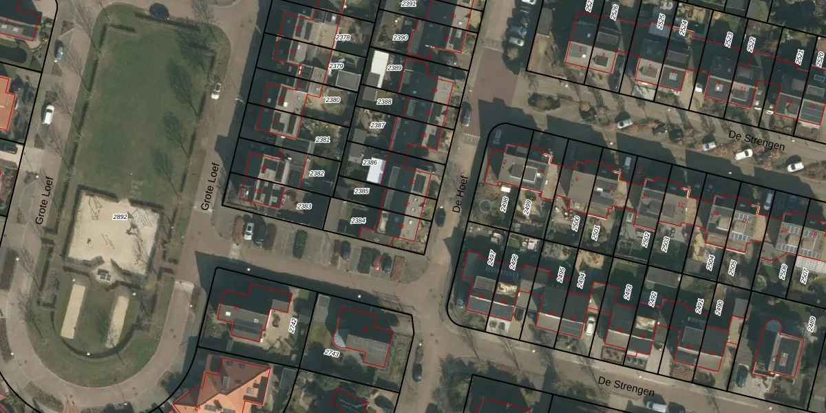 Gebruik de zoekbalk of klik op een perceel voor informatie over de adressen binnen dit perceel.