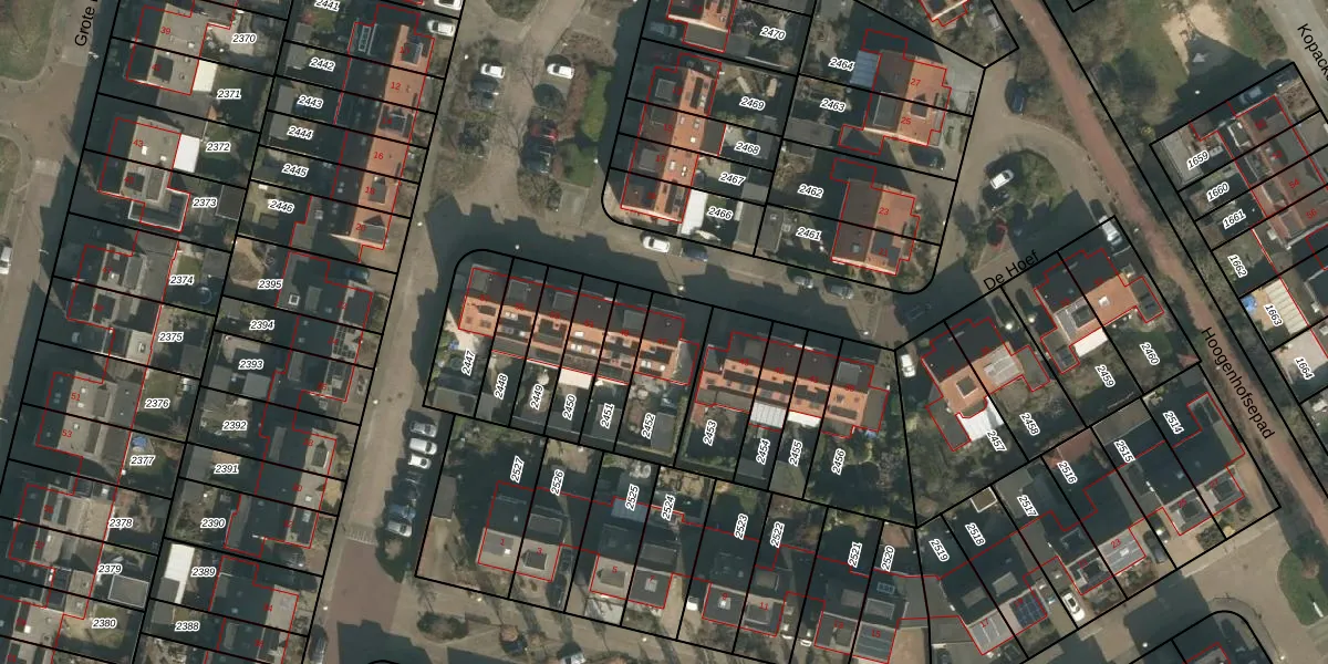 Gebruik de zoekbalk of klik op een perceel voor informatie over de adressen binnen dit perceel.