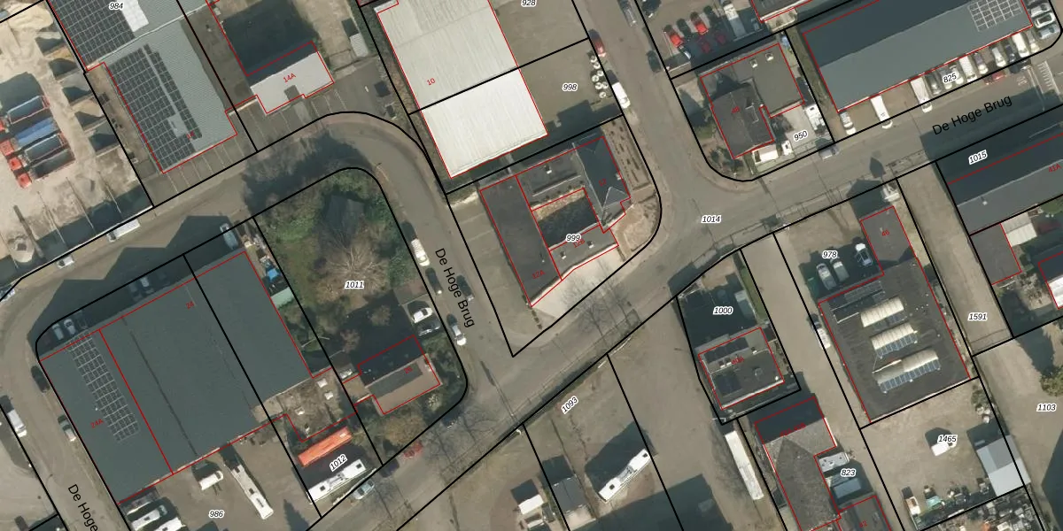 Het perceel waarop De Hoge Brug 12-A staat heeft een oppervlakte van 1030 m². Dit is een zeer groot perceel. De perceeloppervlakte wordt geregistreerd door het Kadaster. Gedetailleerde informatie over de maten van dit perceel kunt u vinden in het rapport Kadastrale kaart met maatvoering van De Hoge Brug 12-A.