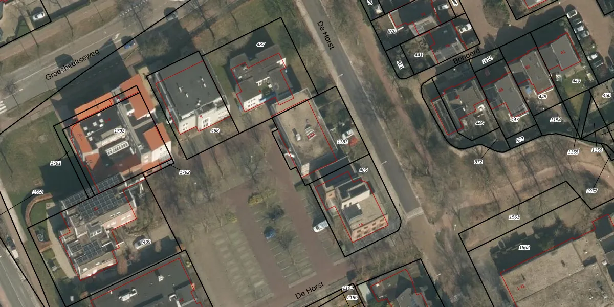 Het perceel waarop De Horst 2 staat heeft een oppervlakte van 606 m². Dit is een groot perceel. De perceeloppervlakte wordt geregistreerd door het Kadaster. Gedetailleerde informatie over de maten van dit perceel kunt u vinden in het rapport Kadastrale kaart met maatvoering van De Horst 2.