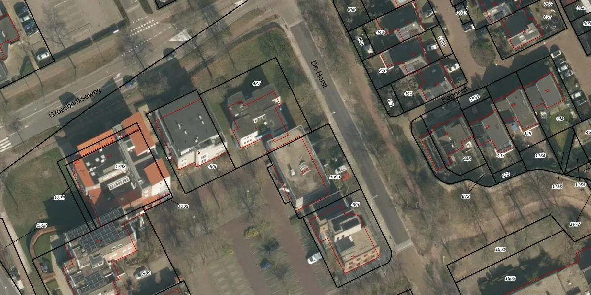Het perceel waarop De Horst 2-A staat heeft een oppervlakte van 606 m². Dit is een groot perceel. De perceeloppervlakte wordt geregistreerd door het Kadaster. Gedetailleerde informatie over de maten van dit perceel kunt u vinden in het rapport Kadastrale kaart met maatvoering van De Horst 2-A.