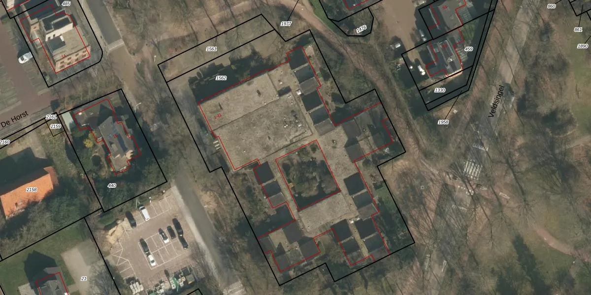 Het perceel waarop De Horst 21 staat heeft een oppervlakte van 4291 m². Dit is een zeer groot perceel. De perceeloppervlakte wordt geregistreerd door het Kadaster. Gedetailleerde informatie over de maten van dit perceel kunt u vinden in het rapport Kadastrale kaart met maatvoering van De Horst 21.