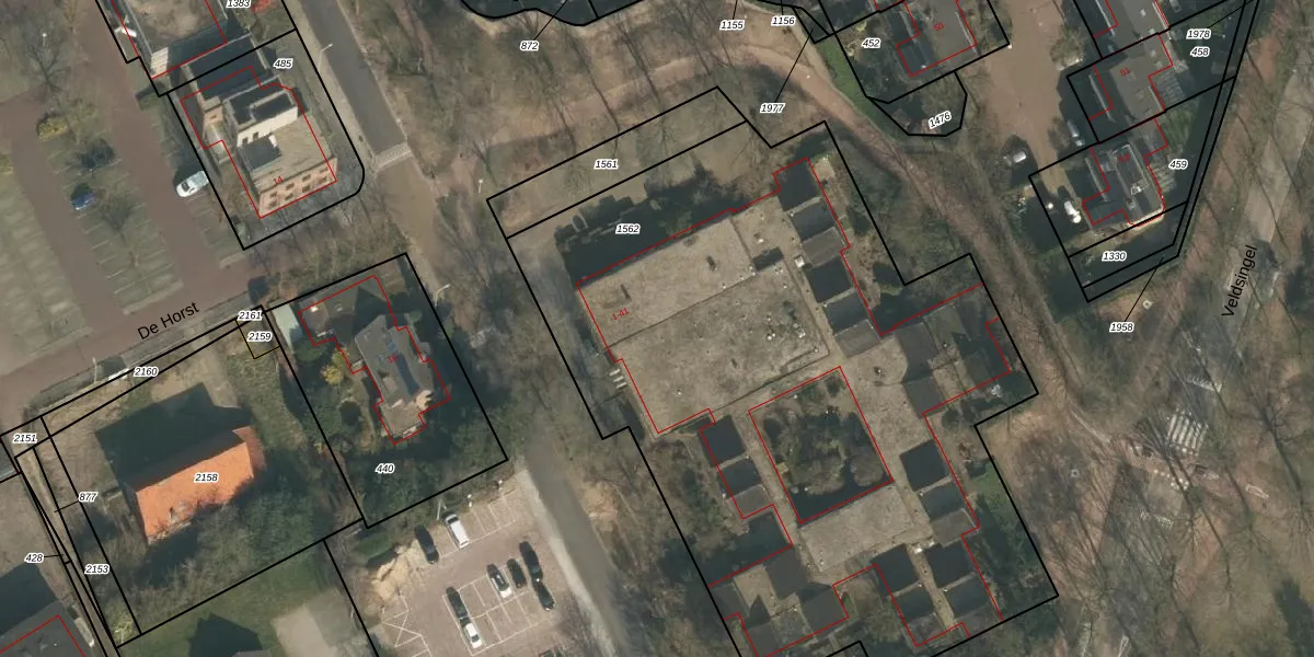 Het perceel waarop De Horst 23 staat heeft een oppervlakte van 4291 m². Dit is een zeer groot perceel. De perceeloppervlakte wordt geregistreerd door het Kadaster. Gedetailleerde informatie over de maten van dit perceel kunt u vinden in het rapport Kadastrale kaart met maatvoering van De Horst 23.