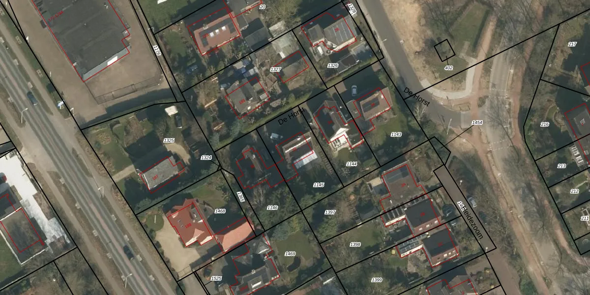 Het perceel waarop De Horst 32 staat heeft een oppervlakte van 520 m². Dit is een groot perceel. De perceeloppervlakte wordt geregistreerd door het Kadaster. Gedetailleerde informatie over de maten van dit perceel kunt u vinden in het rapport Kadastrale kaart met maatvoering van De Horst 32.