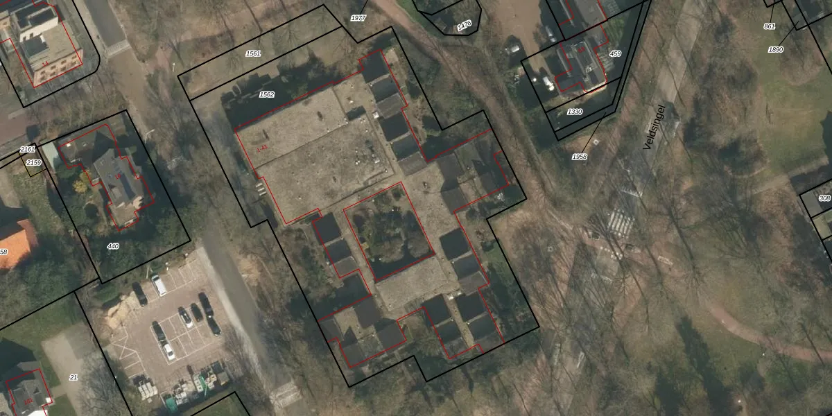 Het perceel waarop het adres ligt is HMN01-H-1562. De afkorting 'HMN01' staat voor kadastrale gemeente Heumen. De oppervlakte van het perceel is 4291 m². Dat is groter dan gemiddeld in Heumen, waar de gemiddelde perceeloppervlakte op 2942,57 m² ligt. De grootste perceeloppervlakte in de kadastrale gemeente is 50,5 ha. De kleinste oppervlakte bedraagt 0 m². Er zijn 21 adressen aanwezig op het perceel. In de Basisregistratie Kadaster (BRK) werden de grenzen van het perceel geregistreerd op 30-12-2010.