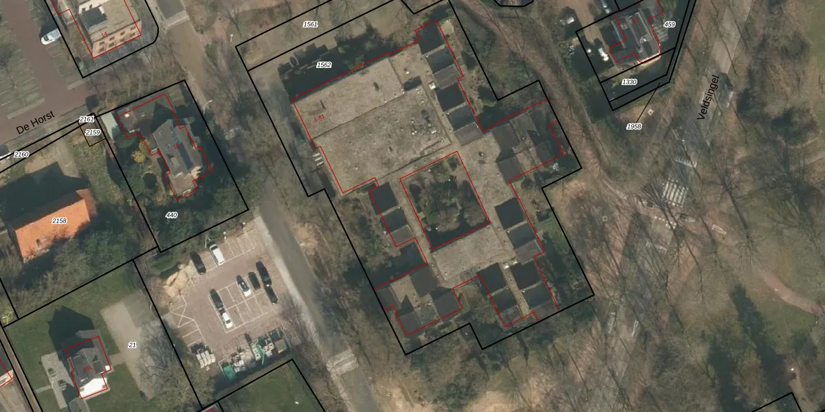 Het perceel waarop De Horst 9 staat heeft een oppervlakte van 4291 m². Dit is een zeer groot perceel. De perceeloppervlakte wordt geregistreerd door het Kadaster. Gedetailleerde informatie over de maten van dit perceel kunt u vinden in het rapport Kadastrale kaart met maatvoering van De Horst 9.