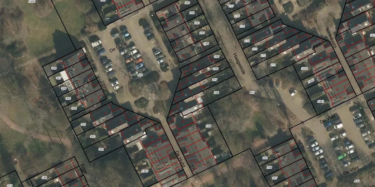 Het perceel waarop De Hulst 15 staat heeft een oppervlakte van 186 m². Dit is een middelgroot perceel. De perceeloppervlakte wordt geregistreerd door het Kadaster. Gedetailleerde informatie over de maten van dit perceel kunt u vinden in het rapport Kadastrale kaart met maatvoering van De Hulst 15.