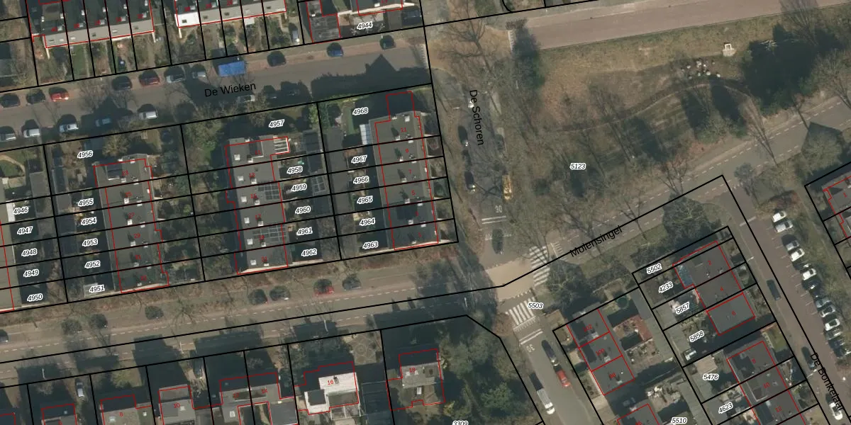 De Schoren 3 is gelegen op kadastraal perceel HMN01G4964. Deze kadastrale aanduiding is uniek en wordt gebruikt door het Kadaster om eigendomsrechten en andere zakelijke rechten vast te leggen. Het perceel maakt onderdeel uit van de kadastrale gemeente Heumen.