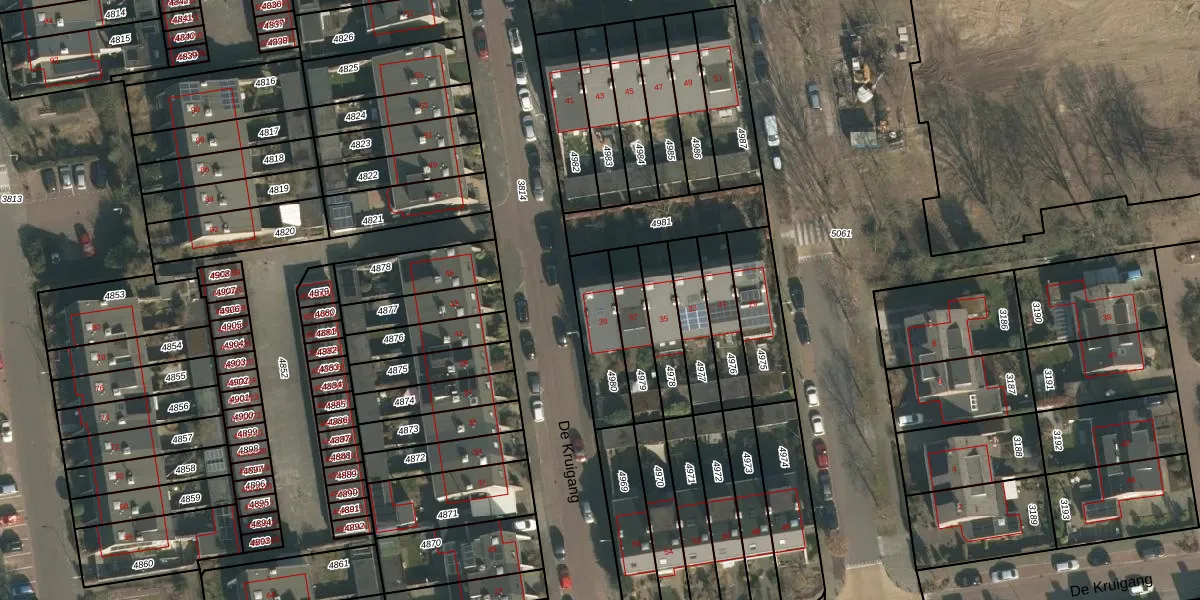 Gebruik de zoekbalk of klik op een perceel voor informatie over de adressen binnen dit perceel.