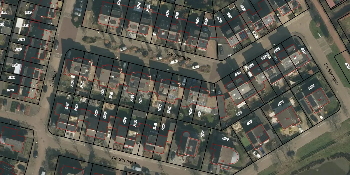 De Strengen 16 is gelegen op kadastraal perceel HMN01C2505. Deze kadastrale aanduiding is uniek en wordt gebruikt door het Kadaster om eigendomsrechten en andere zakelijke rechten vast te leggen. Het perceel maakt onderdeel uit van de kadastrale gemeente Heumen.