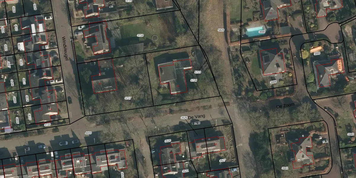 Het perceel waarop De Vang 55 staat heeft een oppervlakte van 1045 m². Dit is een zeer groot perceel. De perceeloppervlakte wordt geregistreerd door het Kadaster. Gedetailleerde informatie over de maten van dit perceel kunt u vinden in het rapport Kadastrale kaart met maatvoering van De Vang 55.