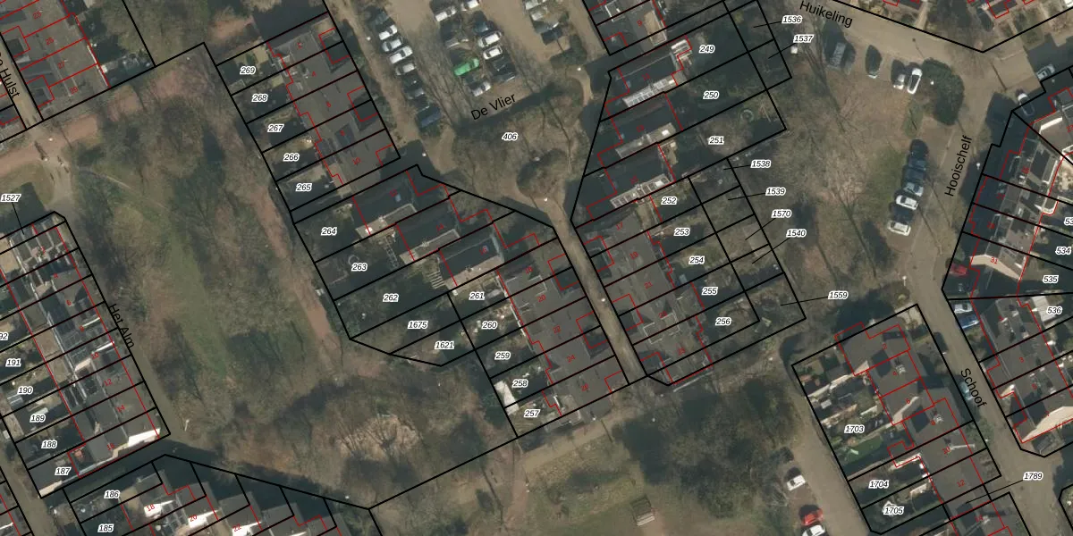 Gebruik de zoekbalk of klik op een perceel voor informatie over de adressen binnen dit perceel.