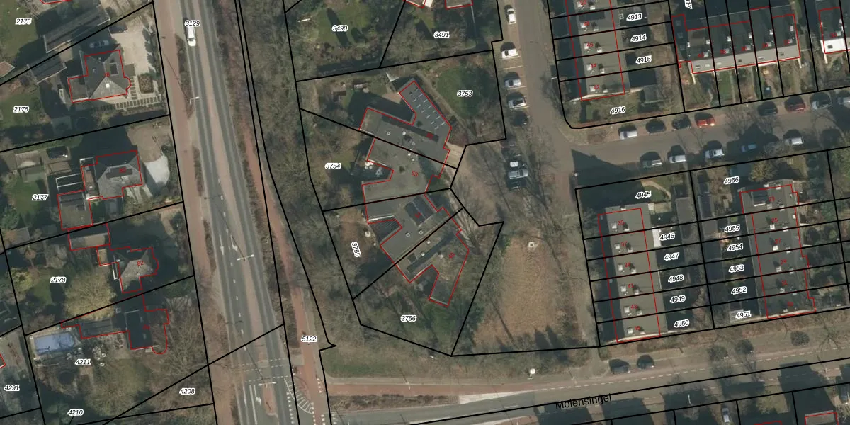 Het perceel waarop het adres ligt is HMN01-G-3755. De afkorting 'HMN01' staat voor kadastrale gemeente Heumen. Het perceel is 424 m² groot. Dat is kleiner dan de gemiddelde perceeloppervlakte in Heumen, dat op 2943,38 m² ligt. Het kleinste perceel in de kadastrale gemeente is 0 m² groot. De grootste perceeloppervlakte is 50,5 ha. Op het perceel bevinden zich geen andere adressen. In de Basisregistratie Kadaster (BRK) werden de grenzen van het perceel geregistreerd op 22-11-2002.