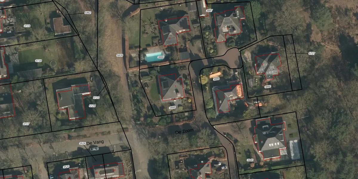 Het perceel waarop De Zoom 1 staat heeft een oppervlakte van 713 m². Dit is een groot perceel. De perceeloppervlakte wordt geregistreerd door het Kadaster. Gedetailleerde informatie over de maten van dit perceel kunt u vinden in het rapport Kadastrale kaart met maatvoering van De Zoom 1.