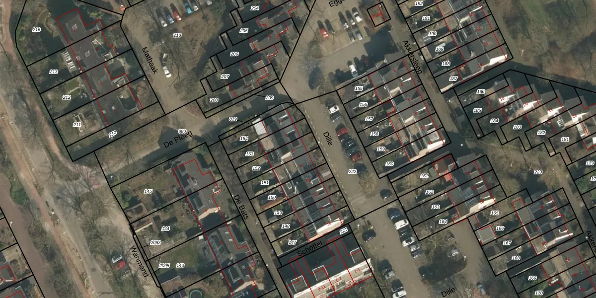 Het perceel waarop Dille 6 staat heeft een oppervlakte van 158 m². Dit is een middelgroot perceel. De perceeloppervlakte wordt geregistreerd door het Kadaster. Gedetailleerde informatie over de maten van dit perceel kunt u vinden in het rapport Kadastrale kaart met maatvoering van Dille 6.