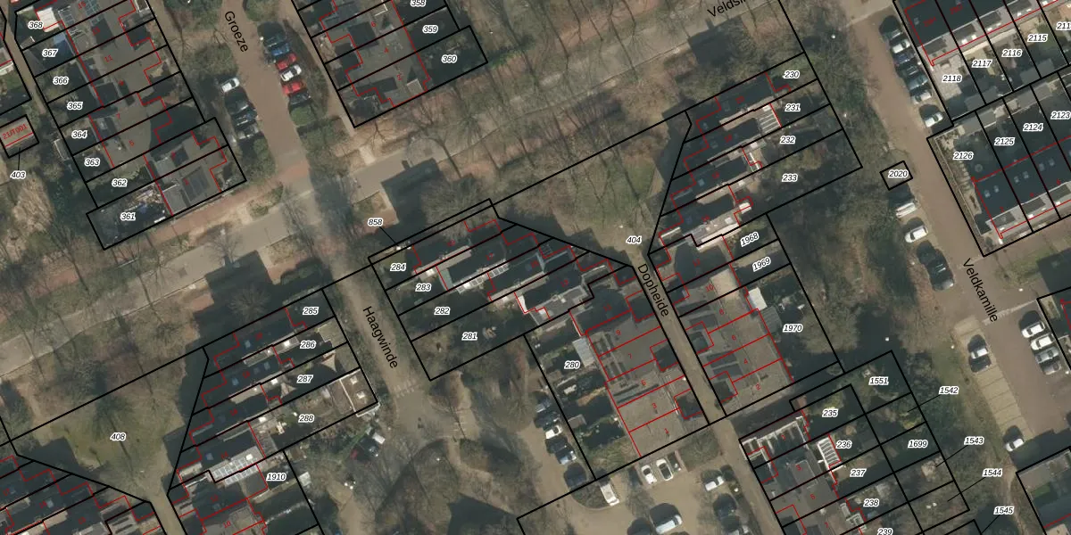 Gebruik de zoekbalk of klik op een perceel voor informatie over de adressen binnen dit perceel.