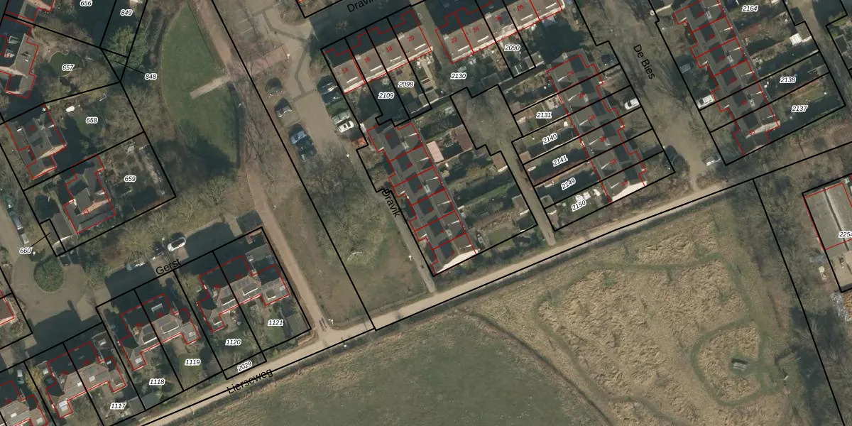Het perceel waarop Dravik 6 staat heeft een oppervlakte van 2160 m². Dit is een zeer groot perceel. De perceeloppervlakte wordt geregistreerd door het Kadaster. Gedetailleerde informatie over de maten van dit perceel kunt u vinden in het rapport Kadastrale kaart met maatvoering van Dravik 6.