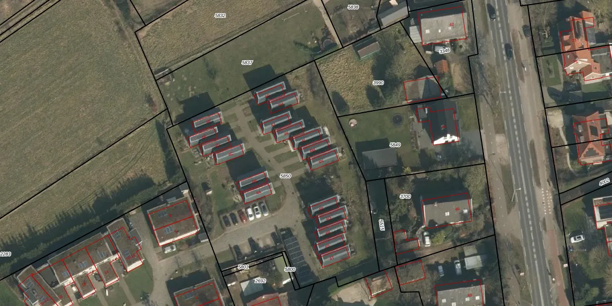 Het adres is gelegen op perceel 5850 in de sectie G en de kadastrale gemeente Heumen. De kadastrale aanduiding is aldus HMN01-G-5850. Het perceel is met 3264 m² relatief groot. Het gemiddelde ligt in de kadastrale gemeente Heumen op 2939,72 m². Het grootste perceel in de kadastrale gemeente is 50,5 ha. Het kleinste perceel heeft een oppervlakte van 0 m². Op het perceel zijn 18 adressen aanwezig. De huidige grenzen van het perceel zijn digitaal in de Basisregistratie Kadaster (BRK) geregistreerd op 04-12-2018.