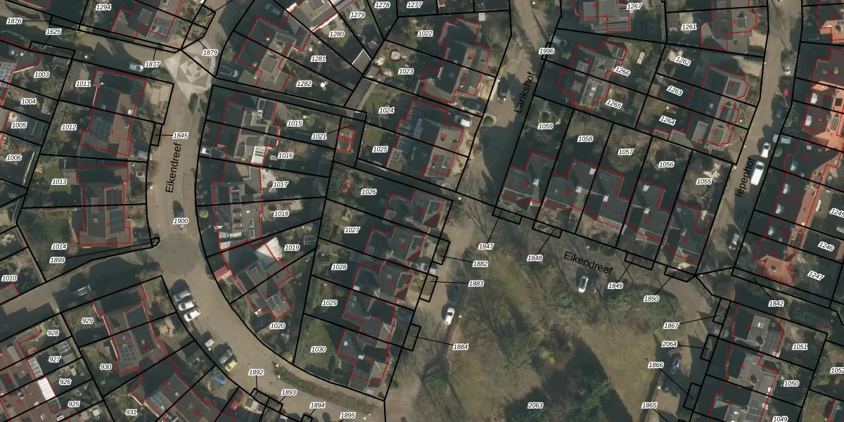 Gebruik de zoekbalk of klik op een perceel voor informatie over de adressen binnen dit perceel.
