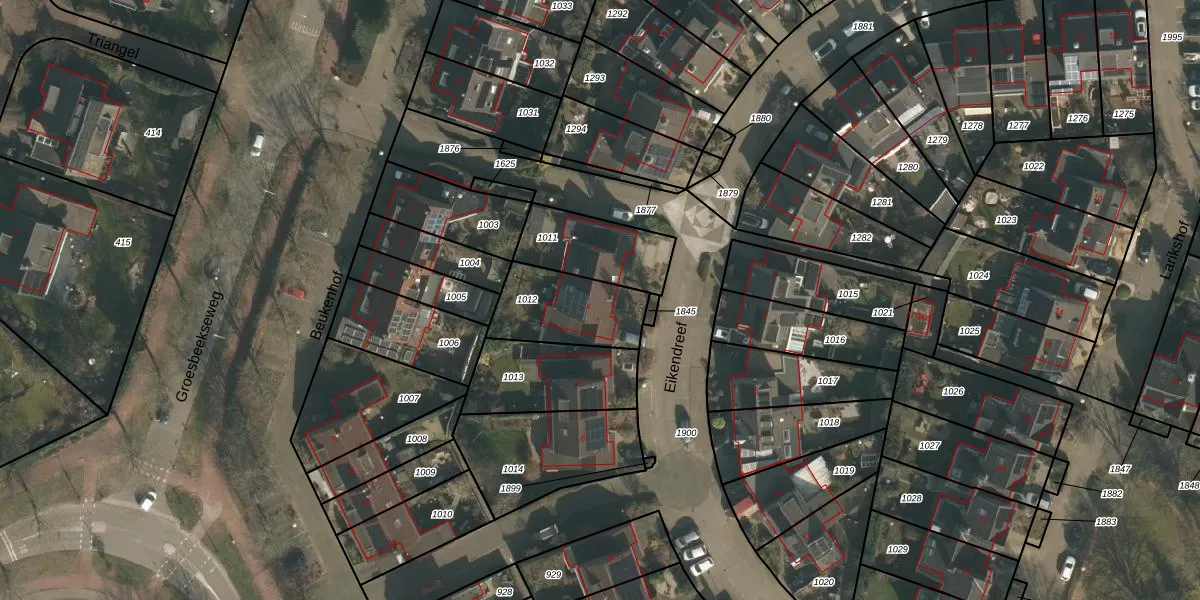 Gebruik de zoekbalk of klik op een perceel voor informatie over de adressen binnen dit perceel.