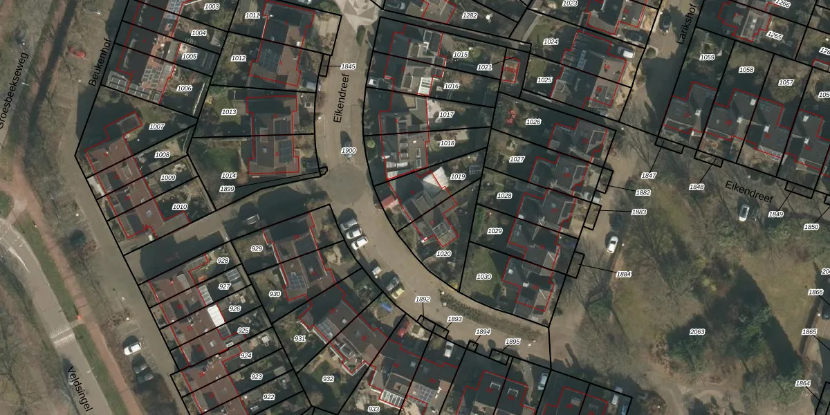 Gebruik de zoekbalk of klik op een perceel voor informatie over de adressen binnen dit perceel.