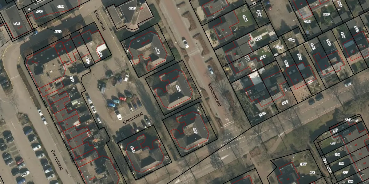 Het perceel waarop Ericastraat 102 staat heeft een oppervlakte van 509 m². Dit is een groot perceel. De perceeloppervlakte wordt geregistreerd door het Kadaster. Gedetailleerde informatie over de maten van dit perceel kunt u vinden in het rapport Kadastrale kaart met maatvoering van Ericastraat 102.